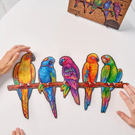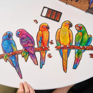 Do you remember the times when you and your friends were still young kids, and you spent hours and hours hanging out, talking, making jokes, and laughing so hard your abs hurt? Playful Parrots are all about that. It’s a party of friends, who talk about their life in the jungle, discuss other parrots, dream about fancy fruits, and brag about cool butterflies they’ve caught. And if some of the parrots are busy with chores or other important parrot stuff, the party can assemble in a smaller size. Each bird is assembled separately, and you decide how to arrange them all together. Position the parrots as you like and create your own unique party of friends!