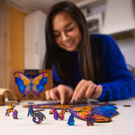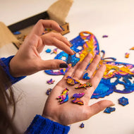 Physicists say that there is a chance that our Universe is a part of an endlessly bigger Multiverse. In this case, the world as we know it might fit into a single grain of powder on a butterfly's wing. To reflect on this concept, we've created the Intergalaxy Butterfly puzzle, that tells a story about discovering pieces and balance inside ourselves and in the surrounding world. It's filled with butterflies, flowers, meditating Buddhas, and animals, but its mesmerizing colors invite you to make a step beyond our world and see with your inner eye how beautiful the endless Universe is.